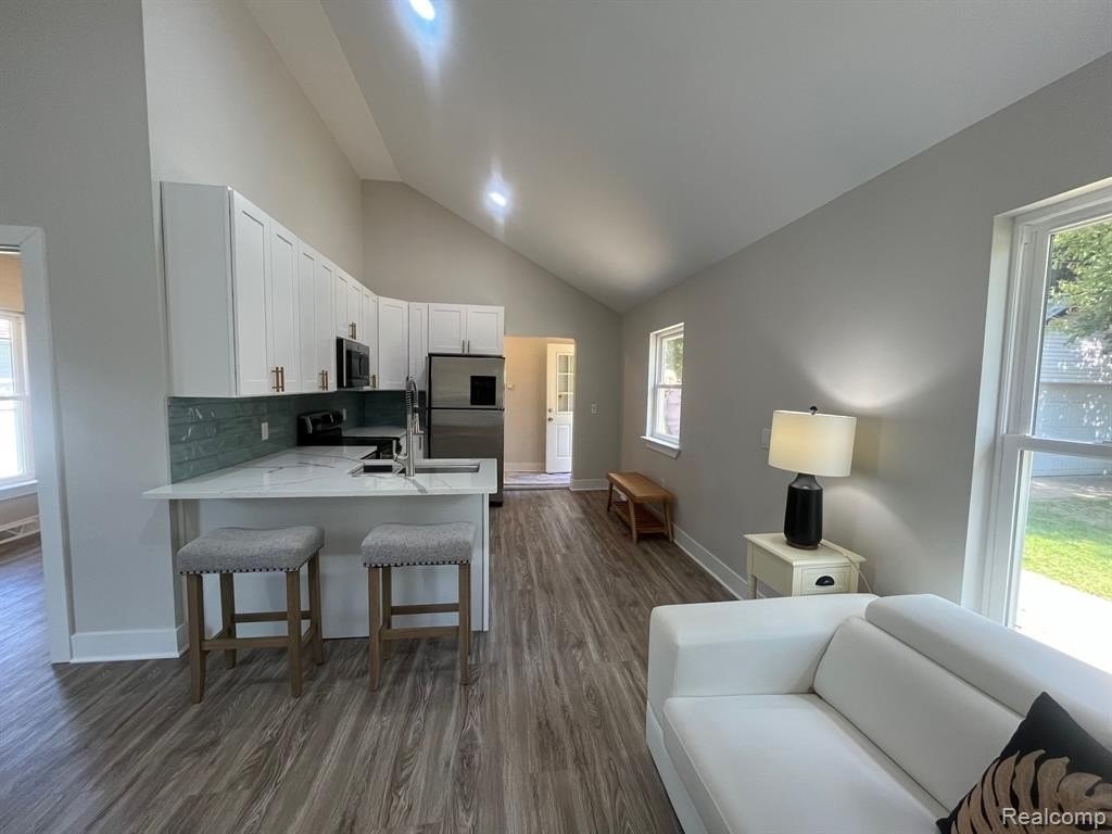 2025 Newly Renovated Home! Step into this beautifully updated 3-bedroom, 1-bath home featuring an open floor plan with vaulted ceilings and abundant natural light. The brand-new kitchen showcases white shaker cabinets, quartz countertops, new stainless steel appliances, and a modern backsplash. The bathroom has been newly remodeled with fresh finishes, giving the home a clean and contemporary feel. Recent updates also include ALL NEW WINDOWS, NEW METAL ROOF, NEW FURNACE, NEW WASHER, AND NEW DRYER. Enjoy additional living space in the enclosed 3-season room, perfect for relaxing or entertaining. Car enthusiasts will love the mechanics dream 2.5-car garage with soaring 9' ceilings. With thoughtful updates throughout, this home is truly move-in readyand it wont last long!